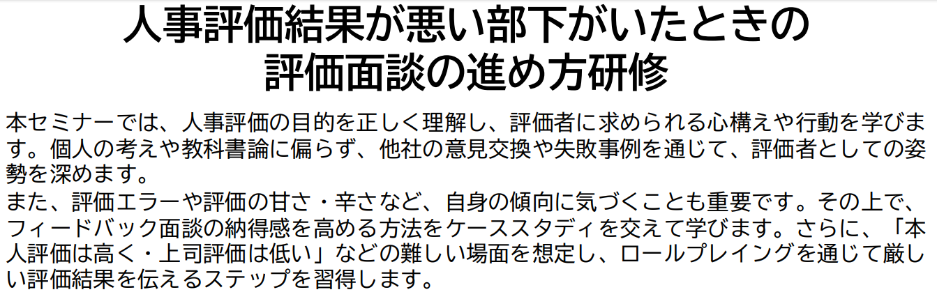 【大阪開催】人事評価結果が悪い部下がいたときの評価面談の進め方研修